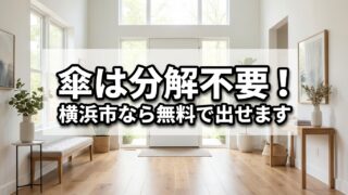 傘 横浜市の傘の捨て方 分解不要で長くても粗大ごみにならない処分方法 「壊れた傘を捨てたいけれど、何ゴミになるの?」「長くてゴミ袋に入らない場合はどうすればいい?」「布やビニールと金属の骨組みは、わざわざ分解しないといけないの?」横浜市にお住まいで、このような疑問をお持ちの方は非常に多いのではないでしょうか。... 2026.03.24 傘横浜市